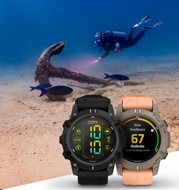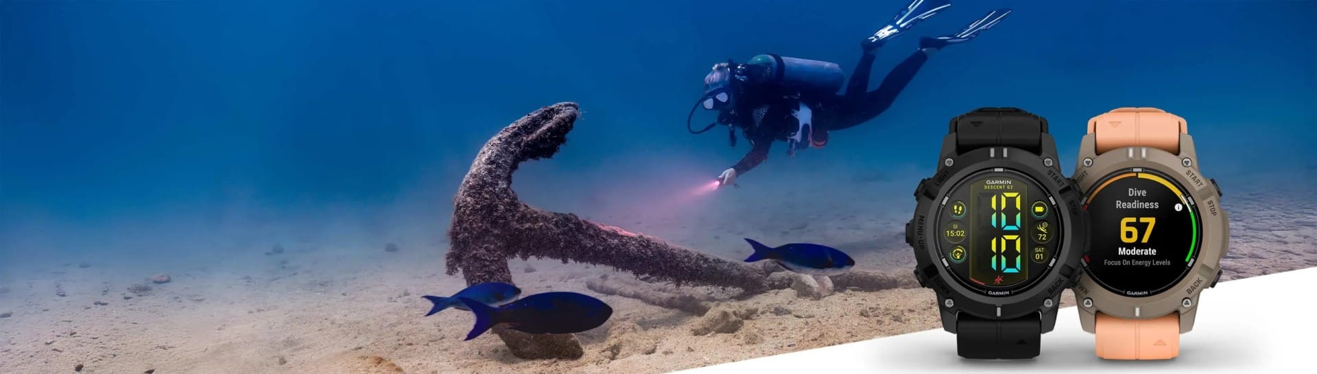 A diving GPS smartwatch with solar charging and health & fitness features.