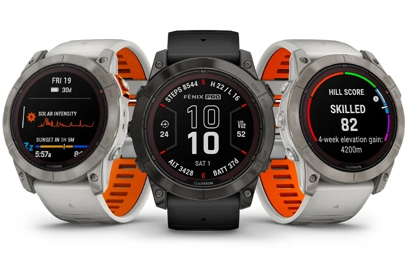 The resilient athletic design features a 1.4″ scratch-resistant sapphire solar charged display, responsive touchscreen, traditional buttons and 51 mm fiber-reinforced polymer case with a steel bezel and rear cover. The watch is tested to U.S. military standards for thermal, shock and water resistance.