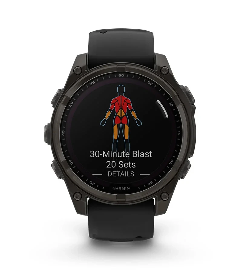 For serious athletes and adventurers who want to push beyond their limits, this premium sports GPS smartwatch is built to perform — with advanced strength training features, dive capability, an internal speaker and mic for voice features, a built-in LED flashlight and up to 28 days of battery life with the Power Sapphire™ solar charging lens1.