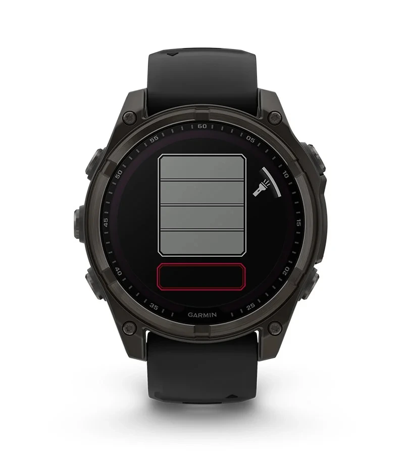| Battery life | Smartwatch: Up to 21 days/28 days with solar* Battery Saver Watch Mode: Up to 34 days/58 days with solar* GPS Only: Up to 67 hours/92 hours with solar** All Satellite Systems: Up to 48 hours/59 hours with solar* All Satellite Systems + Multi-band: Up to 37 hours/43 hours with solar*** All Satellite Systems + Music: Up to 13 hours Max Battery GPS: Up to 132 hours/ 283 hours with solar** Expedition GPS: Up to 34 days/ 58 days with solar* *Solar charging, assuming all-day wear with 3 hours per day outside in 50,000 lux conditions **Solar charging, assuming use in 50,000 lux conditions ***Solar charging, assuming use in 50,000 lux conditions; assuming typical use with SatIQ technology |