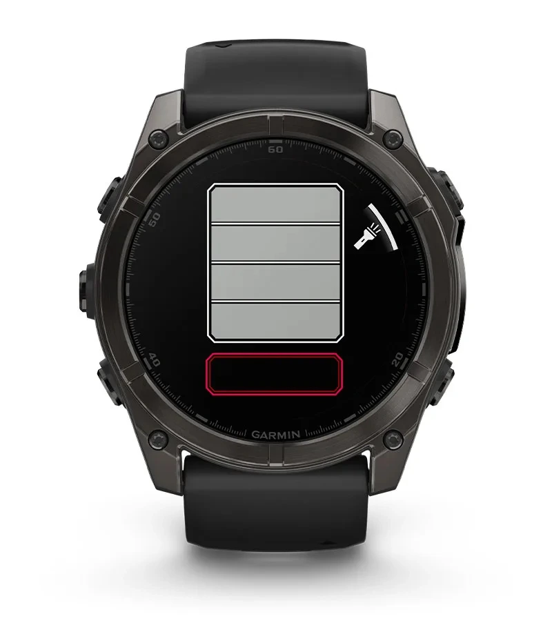| Battery life | Smartwatch: Up to 29 days (13 days always-on) Battery saver watch mode: Up to 41 days GPS Only: Up to 84 hours (65 hours always-on) All Satellite Systems: Up to 68 hours (54 hours always-on) All Satellite Systems + Multi-band: Up to 62 hours (49 hours always-on)* All Satellite Systems + Music: Up to 18 hours Max Battery GPS: Up to 145 hours Expedition GPS: Up to 31 days *Assuming typical use with SatIQ technology |