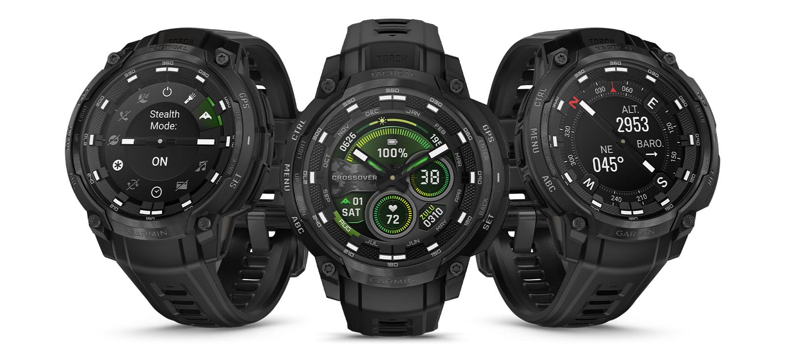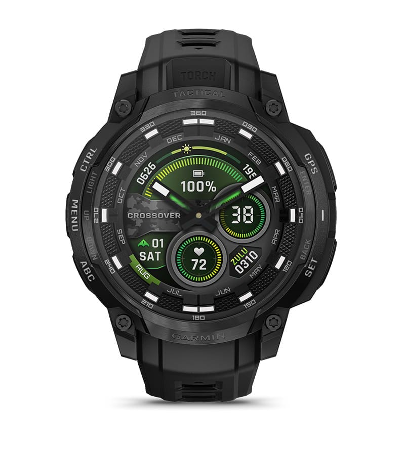 Featuring a colourful 1.2″ display, analogue watch hands, a built-in flashlight and more — Instinct Crossover AMOLED – Tactical Edition is the rugged GPS smartwatch that’s ready for any mission.