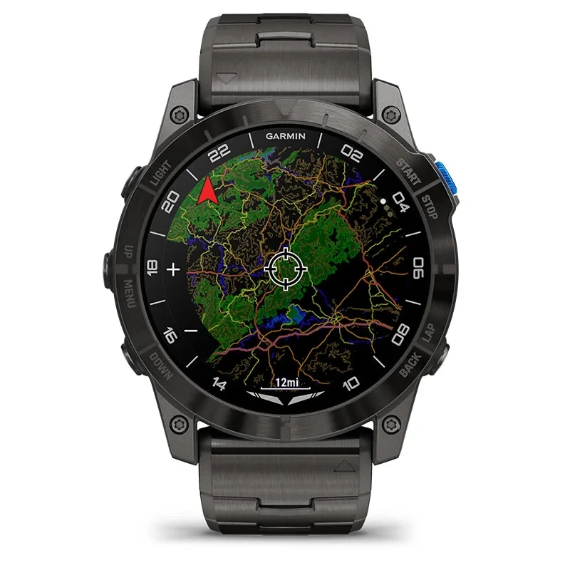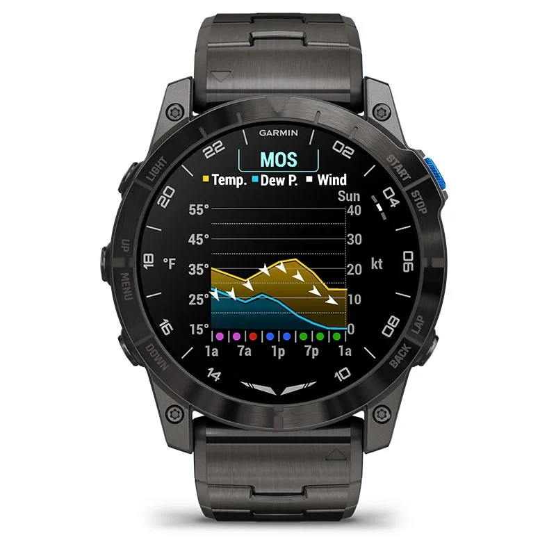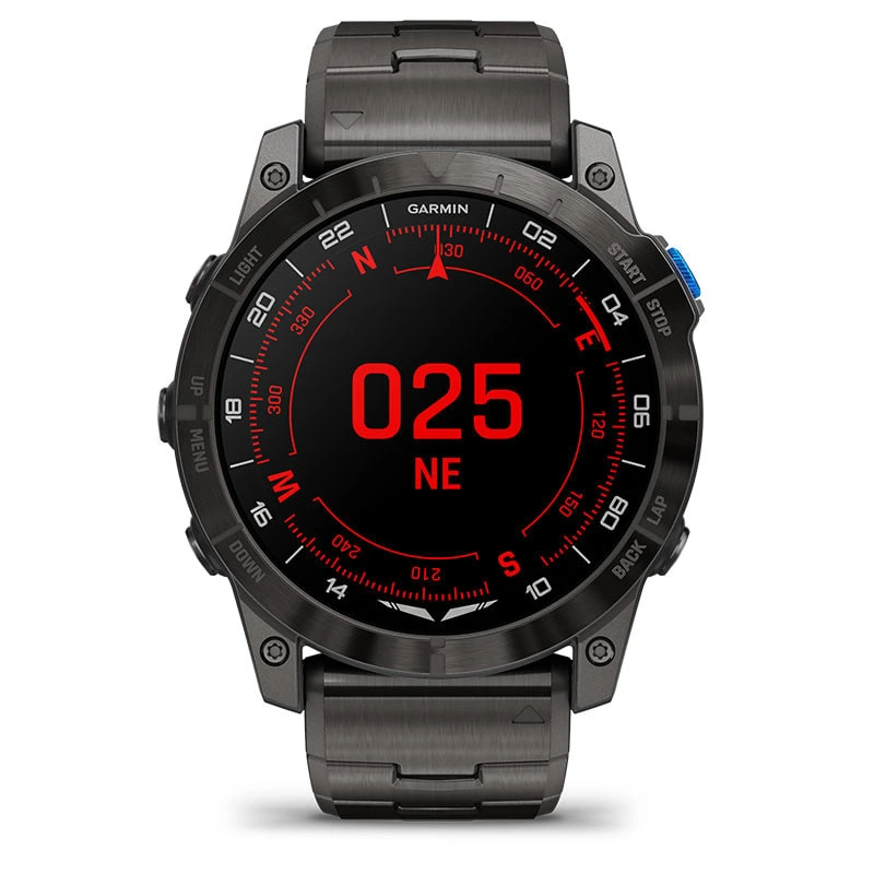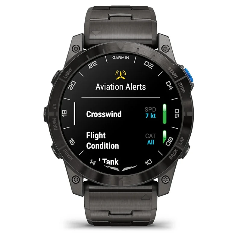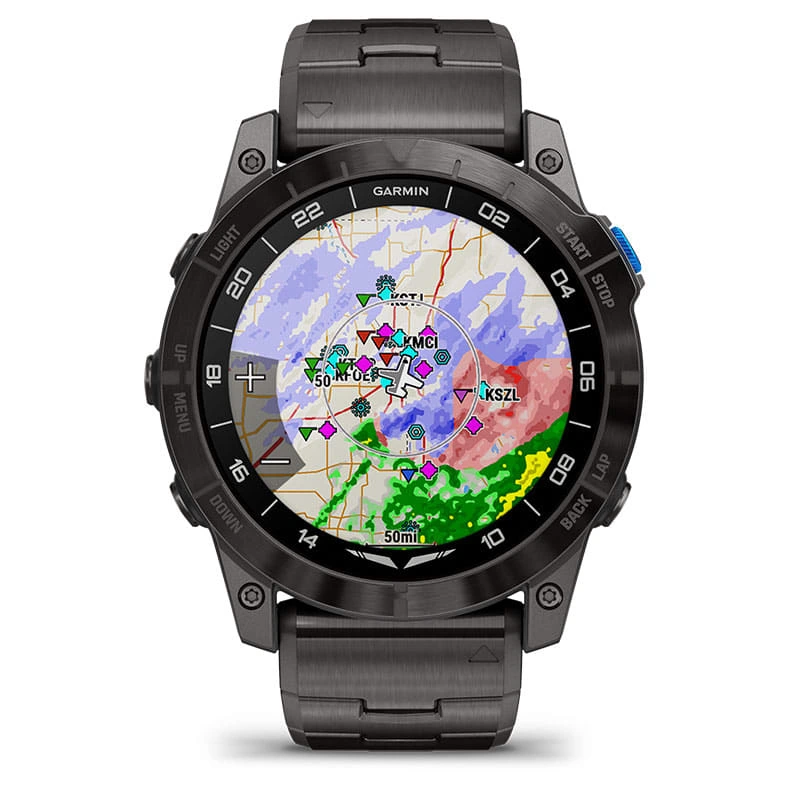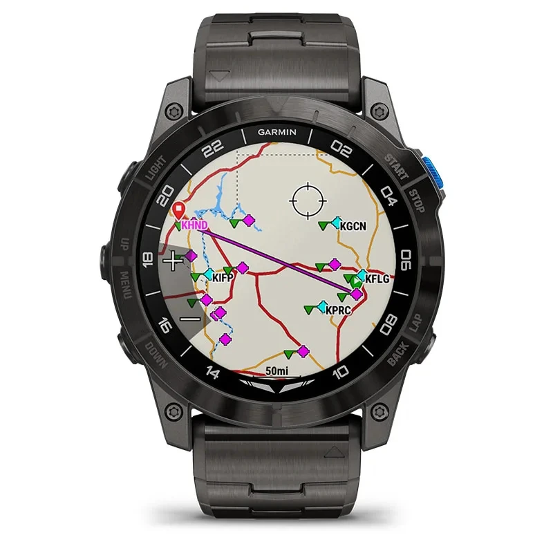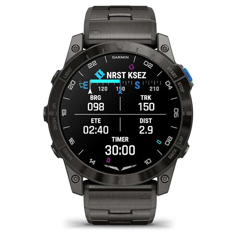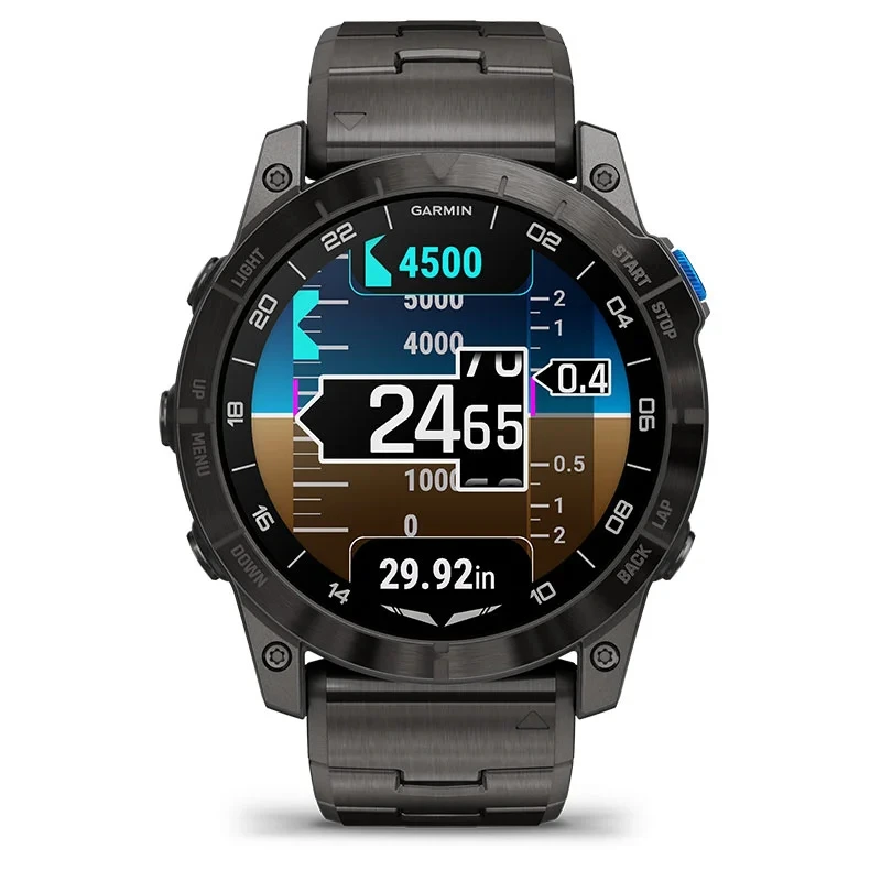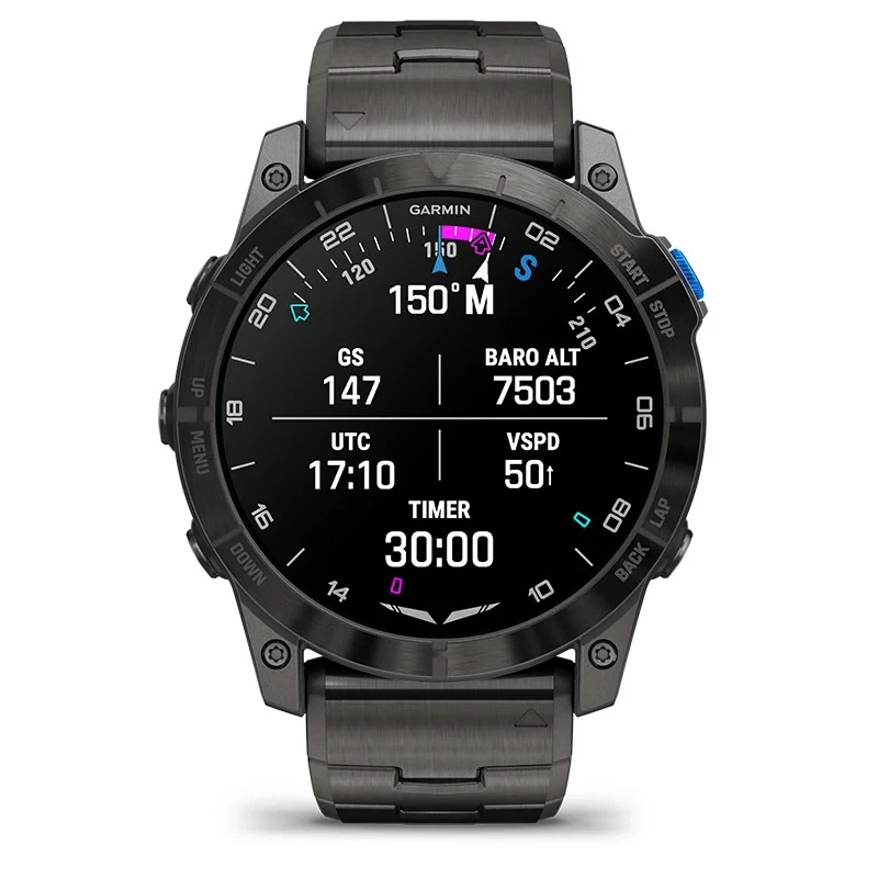 Be ready for takeoff, day or night. This premium smartwatch has a built-in flashlight, superbright AMOLED display and advanced tools for flying and fitness.