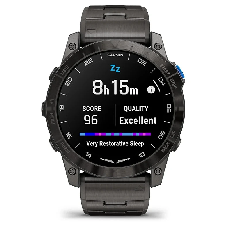 Reflect excellence with a 51 mm titanium bezel and titanium band — both equipped with a scratch-resistant DLC.