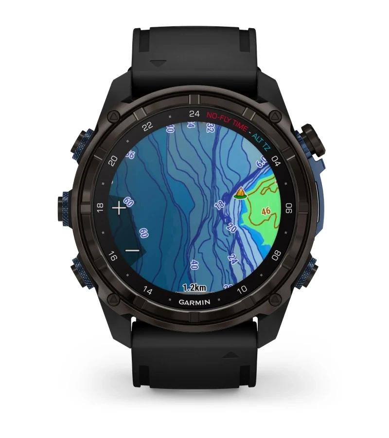 Colour maps on your wrist offer bathymetric depth contours and more than 4,000 dive sites to help you discover new places to dive and get oriented.