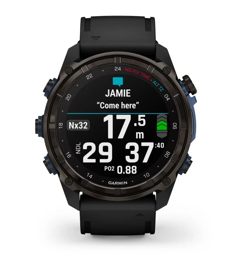 Featuring SubWave™ sonar-based communication and diver monitoring, this advanced, air-integrated¹ dive computer and smartwatch comes with Garmin innovations to help prepare you to make the most of your diving experience — plus multisport training and smart features for your active life out of the water.